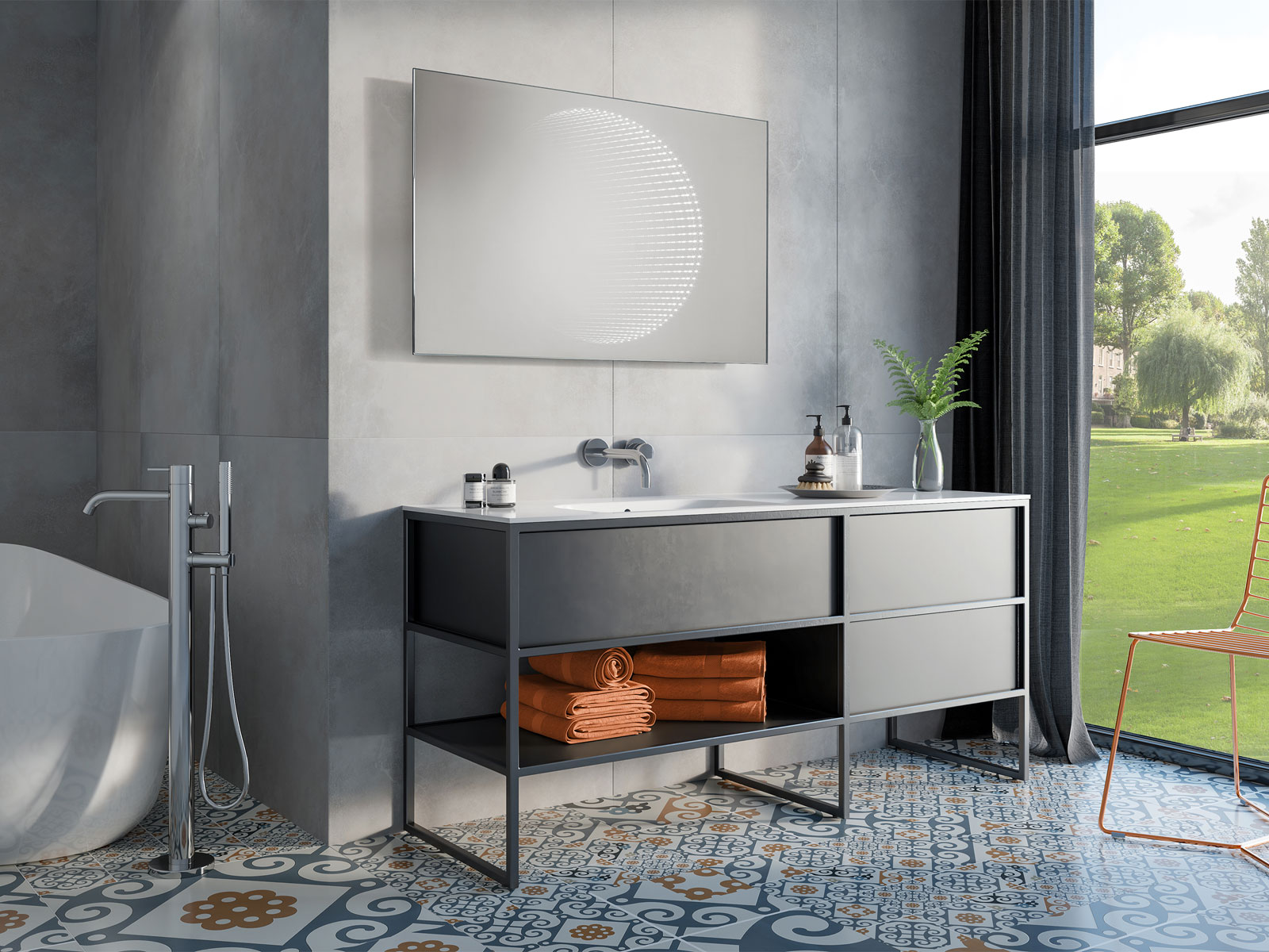 Viene installato sul bordo del retro dello specchio, per cui è invisibile nella sua parte d'utilizzo, sottolineando così il design minimalista e moderno del prodotto.
