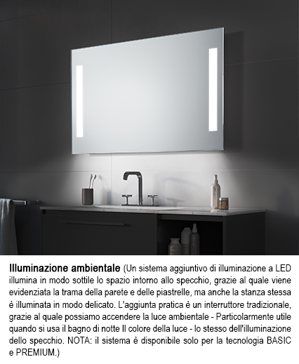 - IP67 – 12V, integrato, nascosto dietro lo specchio