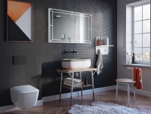 Viene installato sul bordo del retro dello specchio, per cui è invisibile nella sua parte d'utilizzo, sottolineando così il design minimalista e moderno del prodotto.