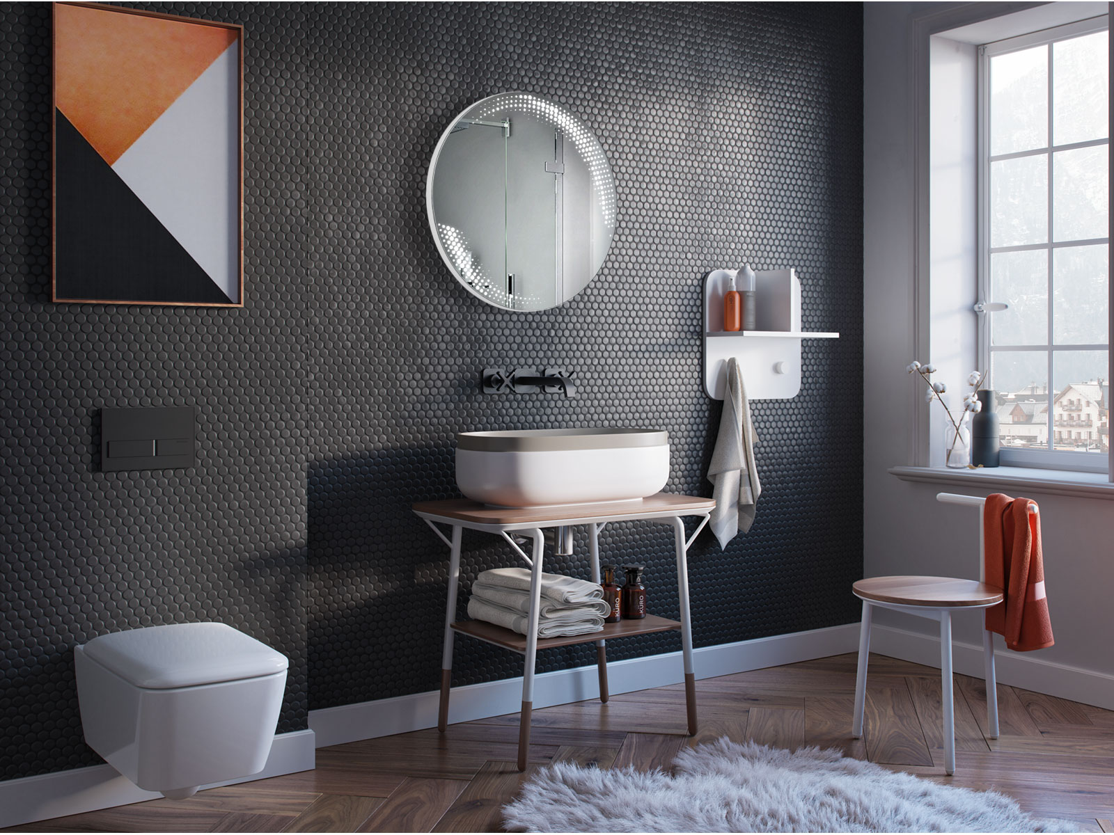 Viene installato sul bordo del retro dello specchio, per cui è invisibile nella sua parte d'utilizzo, sottolineando così il design minimalista e moderno del prodotto.