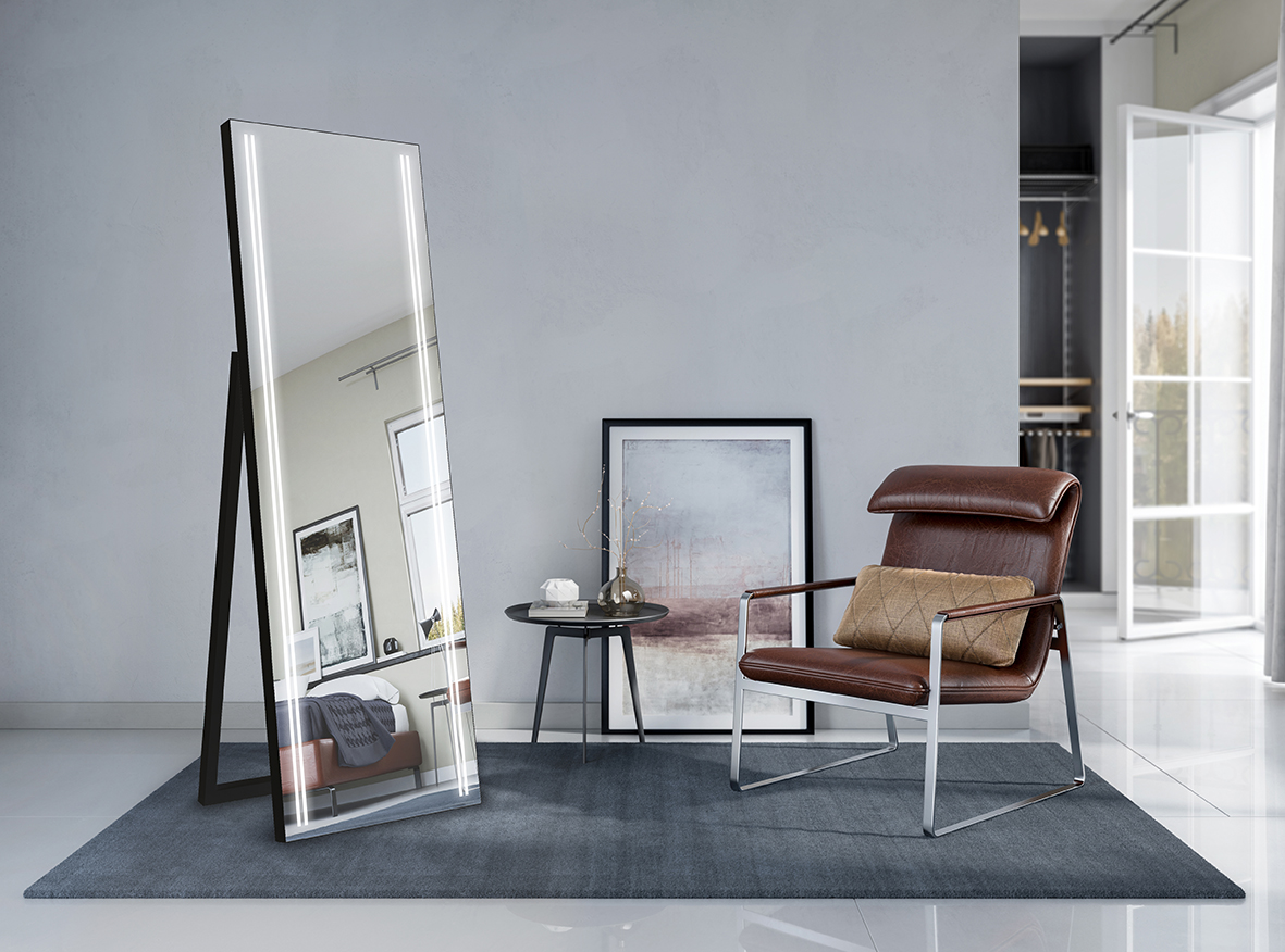 Specchio da terra a LED Lo specchio da terra è un accessorio moderno che può svolgere diverse funzioni in un interno. L'elegante specchio da terra a LED è sia una decorazione efficace che un pratico dispositivo che, grazie alla sua posizione adatta, ingrandisce visivamente qualsiasi stanza. Uno specchio alto da terra è utile quando si misurano i vestiti e si scelgono le stilizzazioni quotidiane. Qualsiasi membro della famiglia, indipendentemente dalle loro dimensioni, può usarlo facilmente. Solidi supporti garantiscono stabilità e sicurezza. Puoi anche regolare lo specchio in qualsiasi angolazione. Gli specchi alti riflettono gli elementi della stanza e conferiscono agli interni un aspetto elegante. Specchi LED da terra per camere da letto e soggiorni