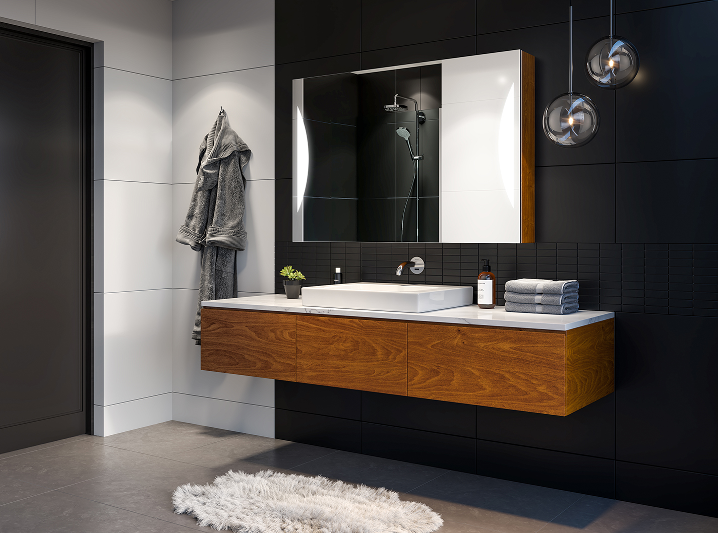Specchio da bagno con mobiletto per il tuo bagnoSe stai cercando un mobile da bagno a specchio su misura, la collezione RUKE è la soluzione perfetta per te. Puoi ordinare uno specchio con mobiletto perfetto per la disposizione del tuo bagno. Offriamo modelli in vari colori di alloggiamento e vari sistemi di illuminazione. Realizziamo anche uno specchio da bagno con mobiletto su misura. Scegli una soluzione conveniente grazie alla quale organizzerai lo spazio del bagno e realizzerai un trucco perfetto.